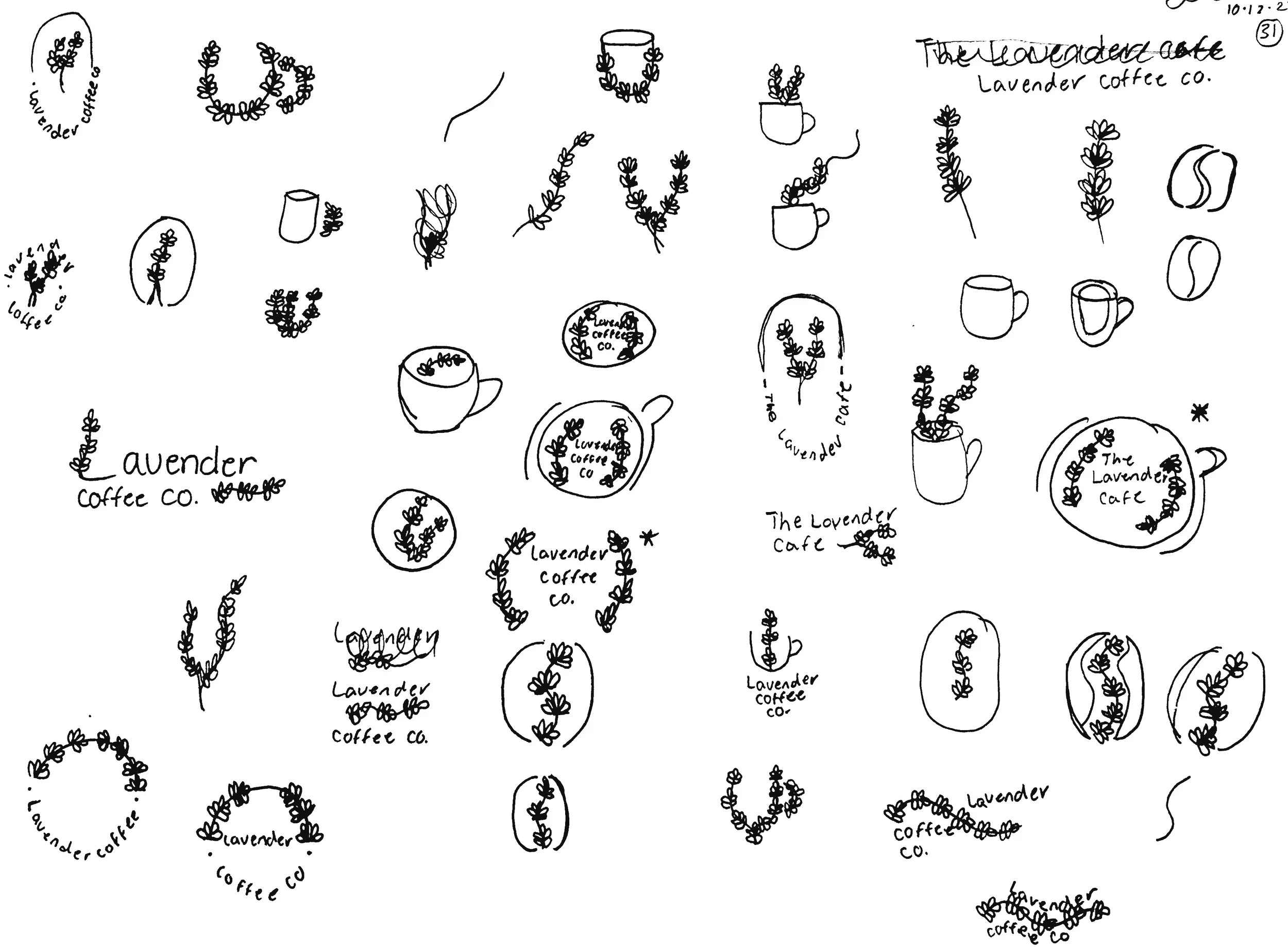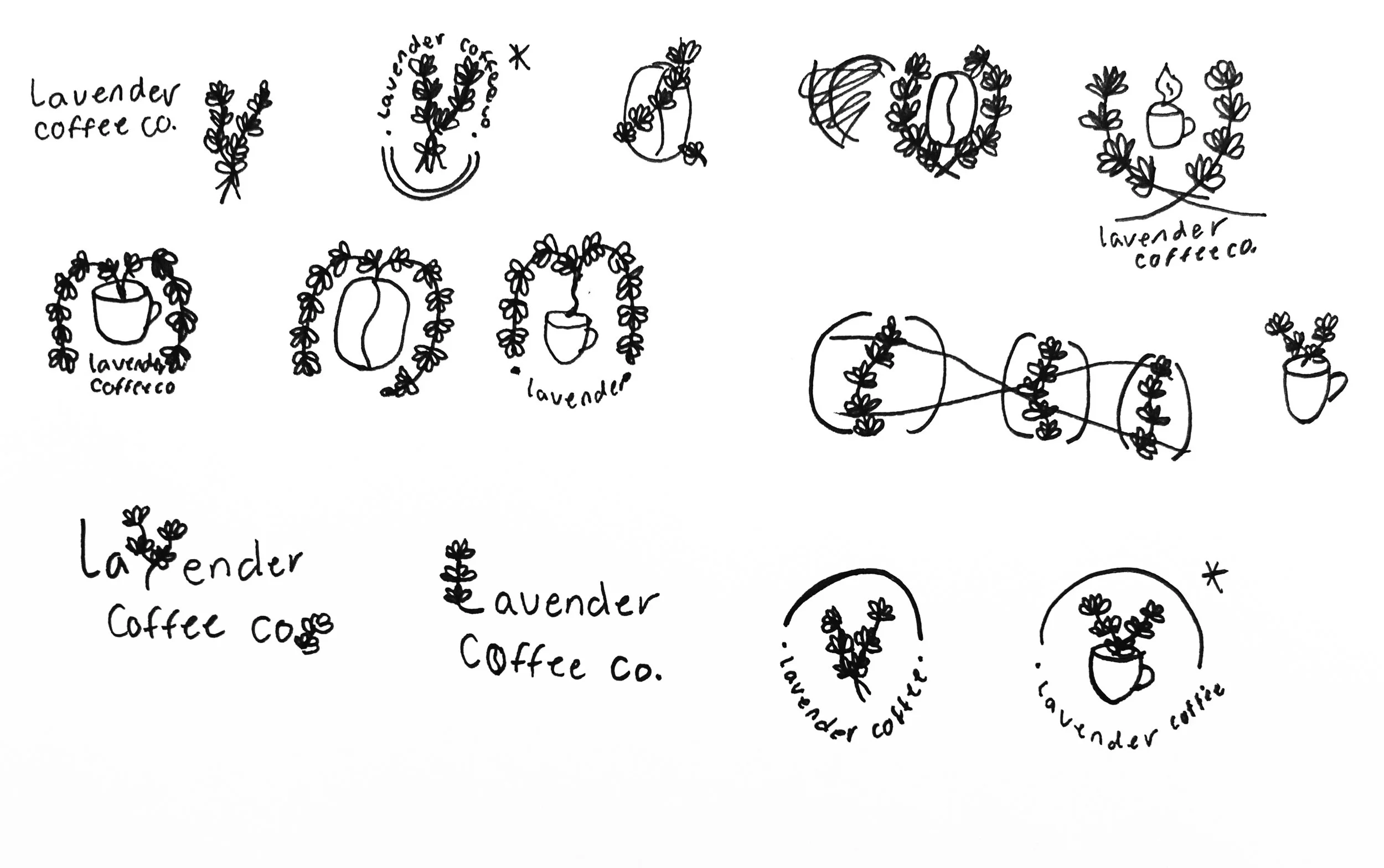 The logo brainstorming phase involved many thumbnail sketches to explore a range of visual concepts.